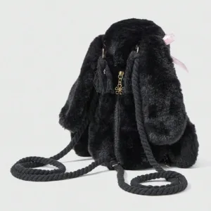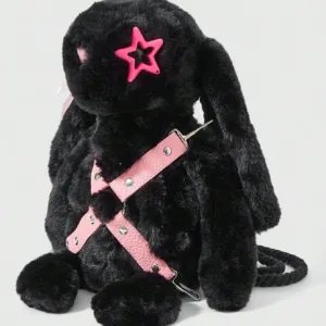 Unleash your inner rebel with the Black Rabbit Mini Backpack! This cute yet edgy novelty bag is perfect for adding a touch of street style to your everyday look. Carry your essentials in a unique and fashionable way.