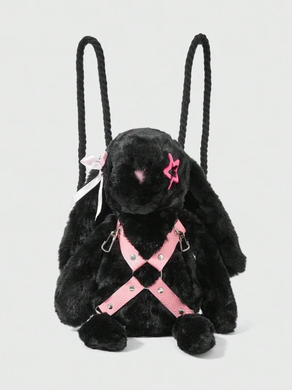 Unleash your inner rebel with the Black Rabbit Mini Backpack! This cute yet edgy novelty bag is perfect for adding a touch of street style to your everyday look. Carry your essentials in a unique and fashionable way.